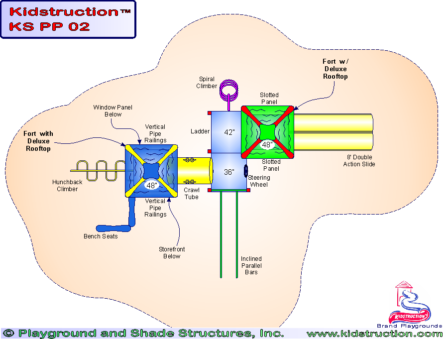 This playground can be modified for ages 2 to 5 years.