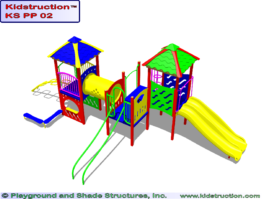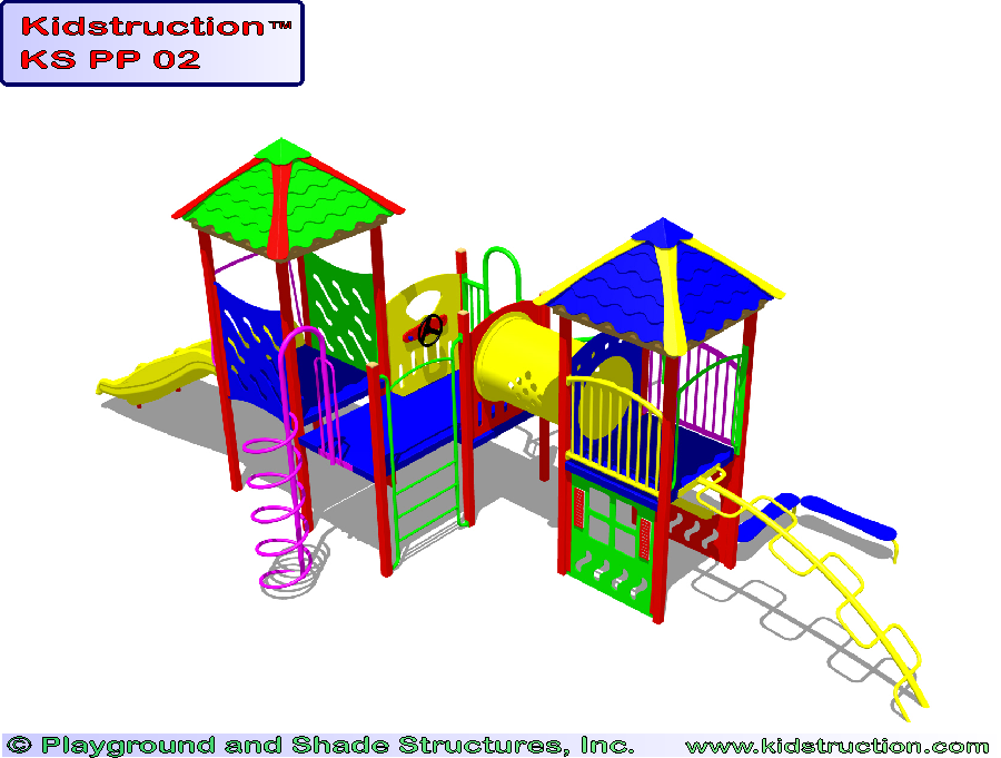 This playground is available in metal or wood construction, and a variety of colors.