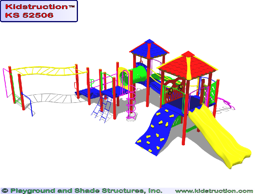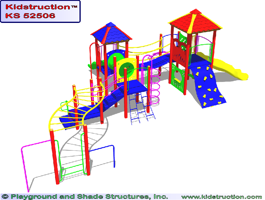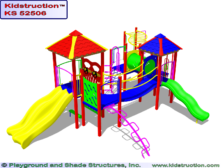 This playground is available in metal or wood construction, and a variety of colors.