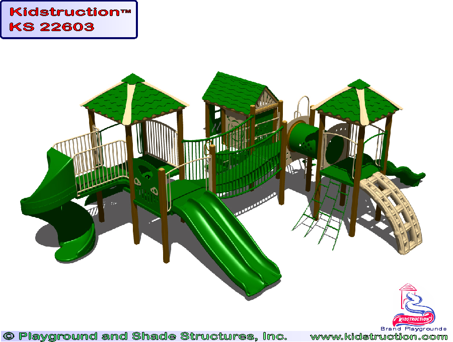 This playground is available in metal or wood construction, and a variety of colors.
