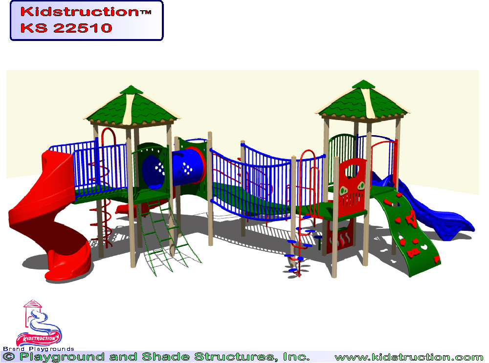 This playground is available in metal or wood construction, and a variety of colors.